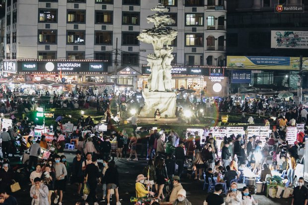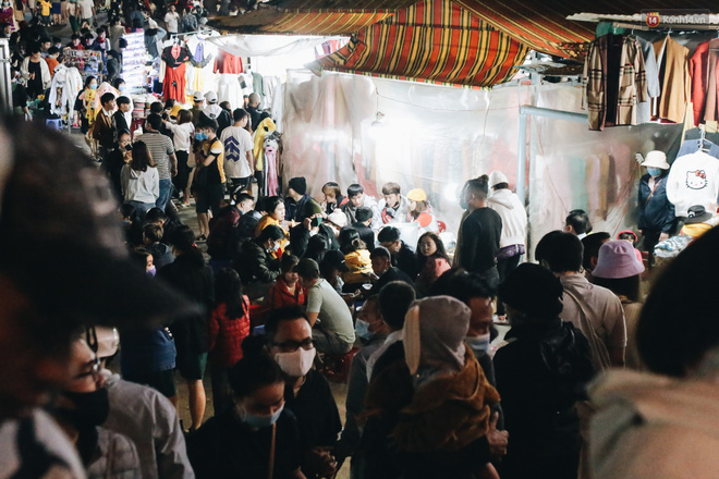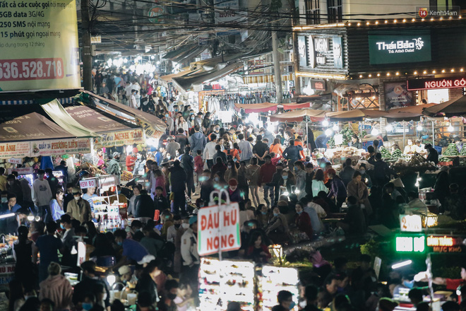 Toàn cảnh khu chợ đêm Đà Lạt không còn chỗ trống khi người đi bộ chen nhau cả lối đi. Cùng với không khí mát mẻ nên khu chợ đêm đã thu hút hàng nghìn du khách đổ về đây.