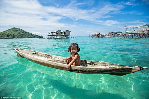 Cuộc sống của người Bajau thường gắn liền với biển cả và những con thuyền lênh đênh trên biển Thái Bình Dương. Nhiếp ảnh gia Réhahn đến từ Pháp đã có 8 ngày được hòa mình vào thiên nhiên và con người ở Borneo (đảo lớn thứ 3 thế giới nằm ờ Đông Nam Á. Đảo chia làm ba phần thuộc chủ quyền của ba nước Brunei, Indonesia và Malaysia) để hiểu hơn về cuộc sống của những đứa trẻ gắn liền với biển cả. |