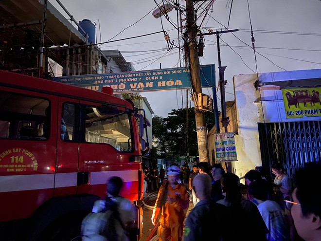 Khuya ngày 1/4, lực lượng chức năng quận 8 (TP.HCM) vẫn đang phong tỏa hiện trường, điều tra nguyên nhân vụ cháy lớn trên địa bàn.