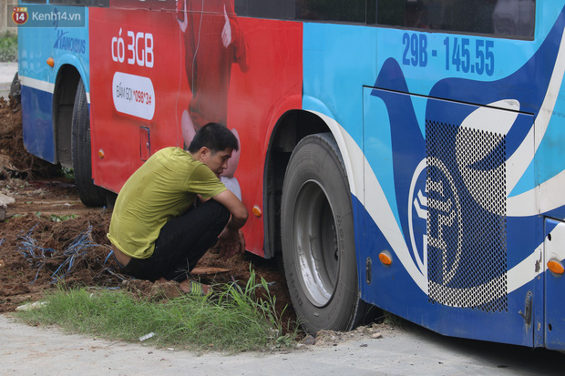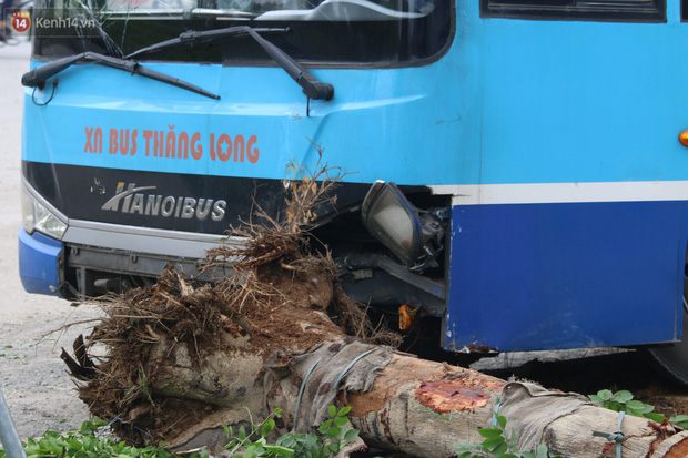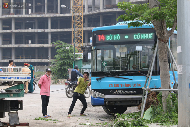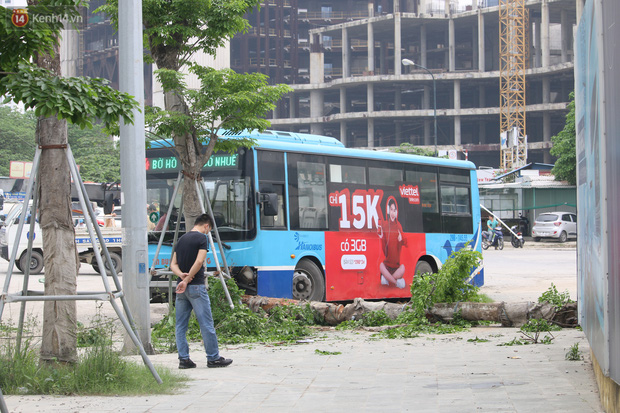 Tai nạn xe buýt ở KĐT Ciputra, tại hiện trường, chiếc xe bus lao gần hết lên vỉa hè, đâm đổ 1 gốc cây lớn và lao thêm 2m, chỉ khi bánh sau mắc kẹt mới chịu dừng lại.