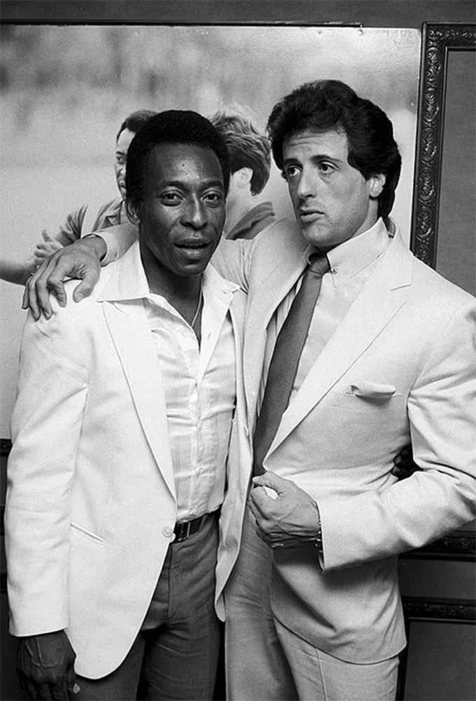 Pele chụp ảnh cùng tài tử Sylvester Stallone năm 1974