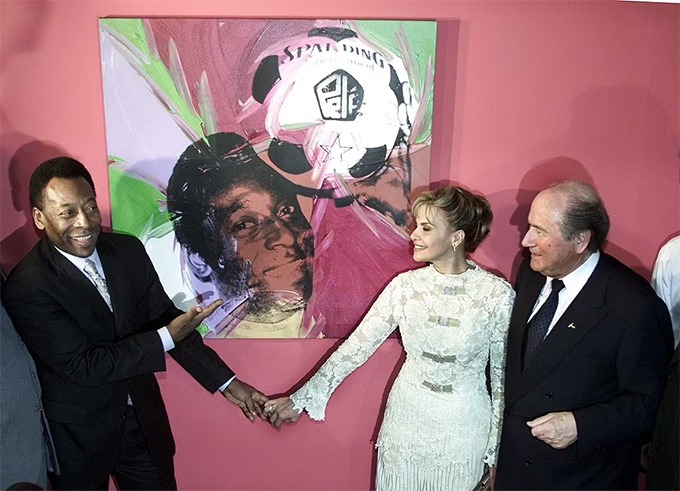 Pele bên cạnh người vợ thứ 2, Assiria Lemos Seixas và cựu chủ tịch FIFA, Sepp Blatter