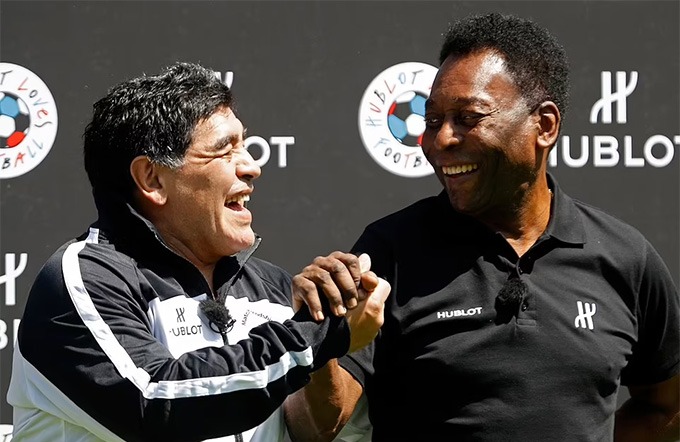 Pele bên cạnh Diego Maradona trong một sự kiện ở EURO 2016