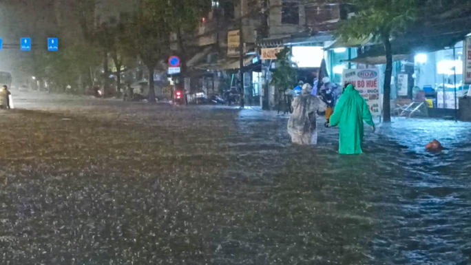 Mưa lớn cũng khiến các tuyến đường trung tâm thành phố như Hoàng Hoa Thám, Hải Phòng (đoạn đối diện ga Đà Nẵng), Hàm Nghi, Nguyễn Văn Linh cũng rơi vào tình trạng ngập cục bộ.