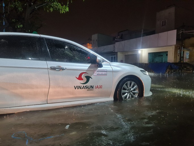 Càng về đêm, lượng mưa càng lớn. Những ôtô gầm thấp không thể lưu thông trên đoạn đường ngập, một số phương tiện buộc phải quay đầu, tìm chỗ thông thoáng để đỗ, chờ nước rút mới tiếp tục hành trình.