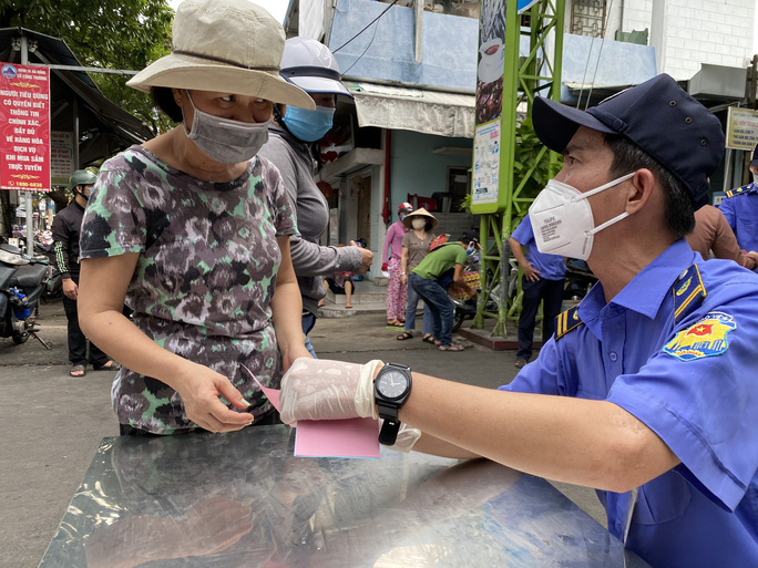 Theo đó, người dân đi vào chợ phải mang theo phiếu và đảm bảo đúng phiếu đã được tổ dân phố phát đến các hộ. Trường hợp không mang theo phiếu hoặc không đúng loại phiếu sẽ được hướng dẫn về liên hệ với tổ dân phố để lấy. Trong ngày 12-8, người dân vào chợ phải mang theo phiếu màu hồng, được quy định sử dụng vào ngày chẵn.
