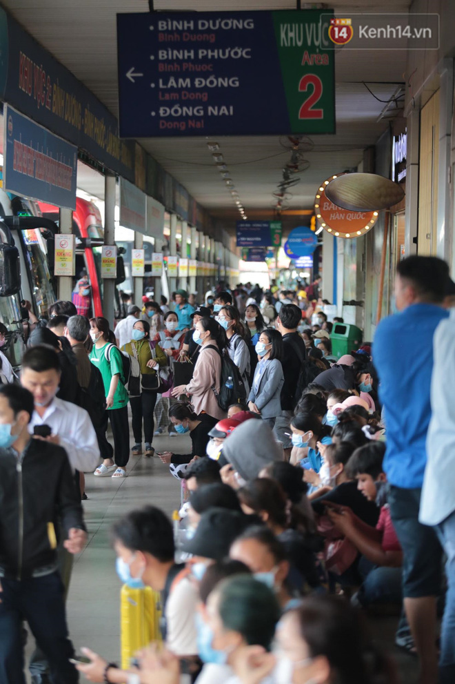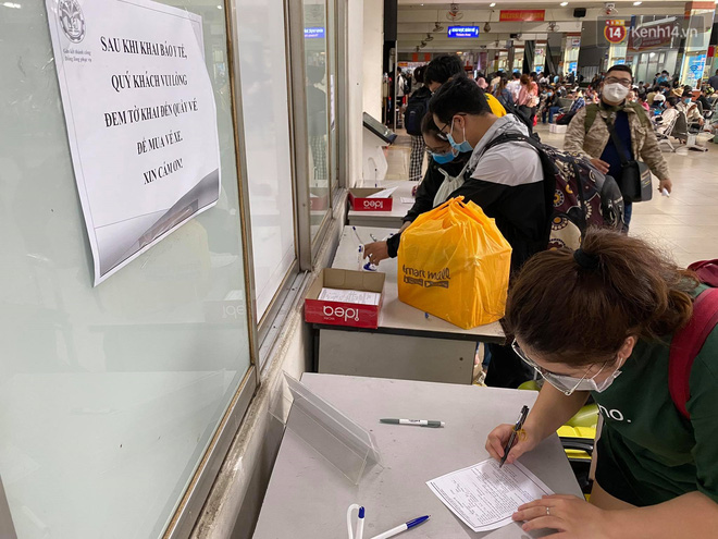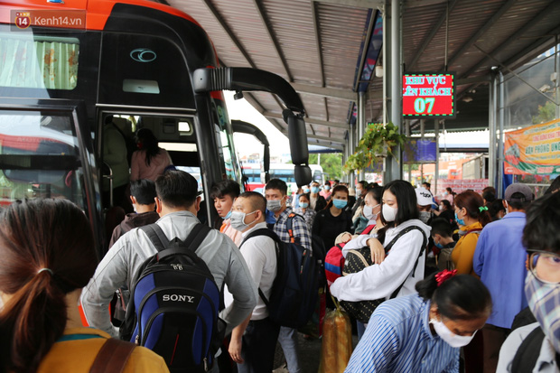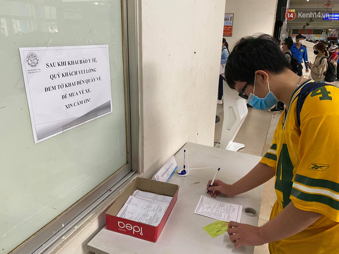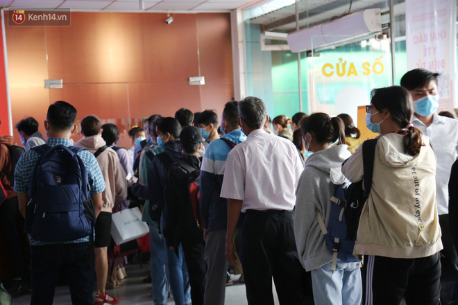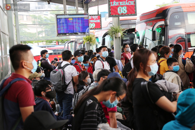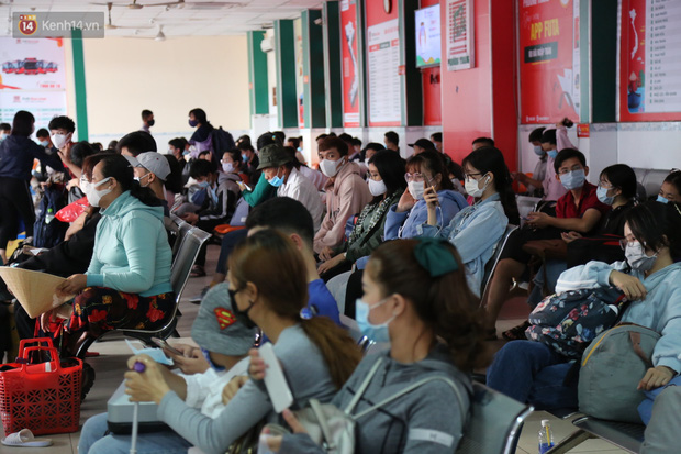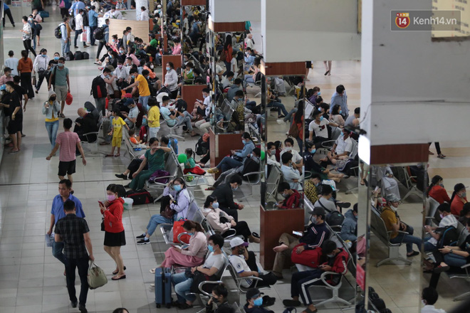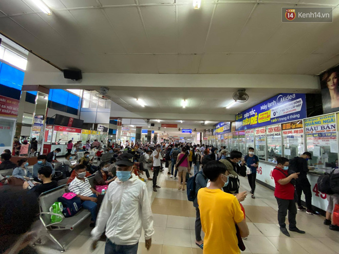 Bên trong bến xe Miền Đông lượng khách tăng đột biến, nhiều người đến hỏi mua vé về các tỉnh lân cận TP.HCM. Do tình hình dịch bệnh nên có nhiều hành khách chưa đặt vé sớm, khi ra bến xe mới tìm mua vé rất khó khăn.