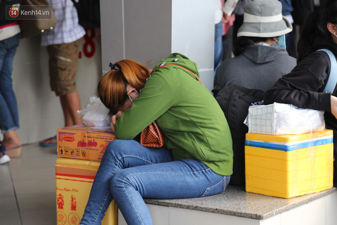 Tương tự, tại nhà chờ ra xe, hàng ngàn hành khách mệt mỏi đợi giờ xuất phát, theo thông báo của nhiều nhà xe, vì lượng xe trên đường đông, nhiều tuyến bị trễ giờ không đúng như dự kiến.