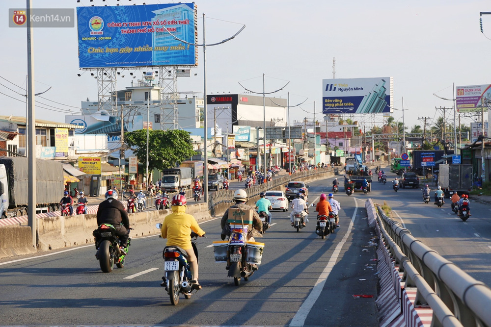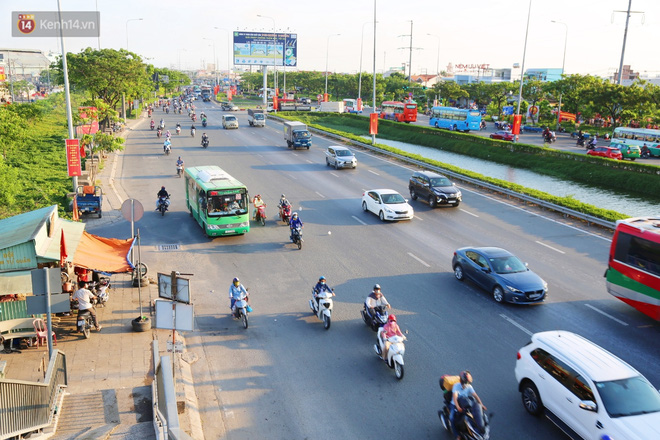 Ghi nhận lúc 16h30, tuyến đường cửa ngõ về bến xe Miền Đông (quận Bình Thạnh) như Xa lộ Hà Nội, Quốc lộ 13 khá thông thoáng, thỉnh thoảng xe đông nhưng không xảy ra tình trạng ùn ứ.