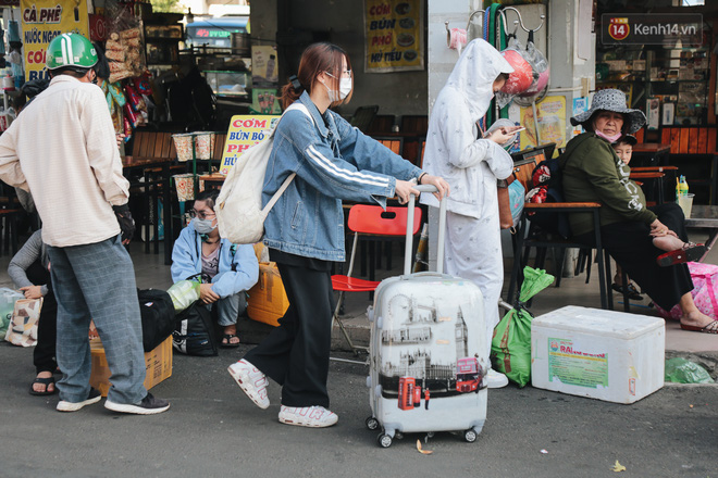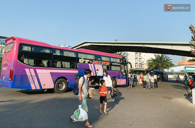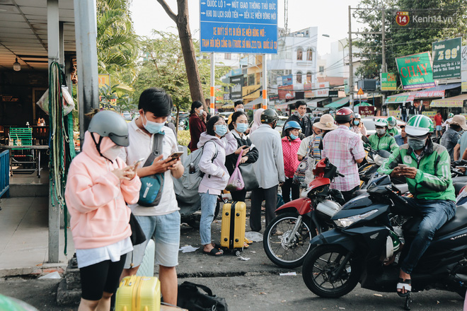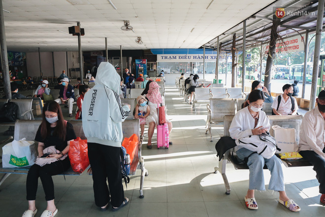 Tương tự, trên đường Đinh Bộ Lĩnh, đoạn trước cổng bến xe Miền Đông lượng xe khách, xe con di chuyển đông đúc nhưng không xảy ra kẹt xe. Nhiều hành khách vừa xuống xe đưa đã ra cổng đứng đợi đón xe ôm công nghệ và taxi để về nhà nên trong bến khá vắng.