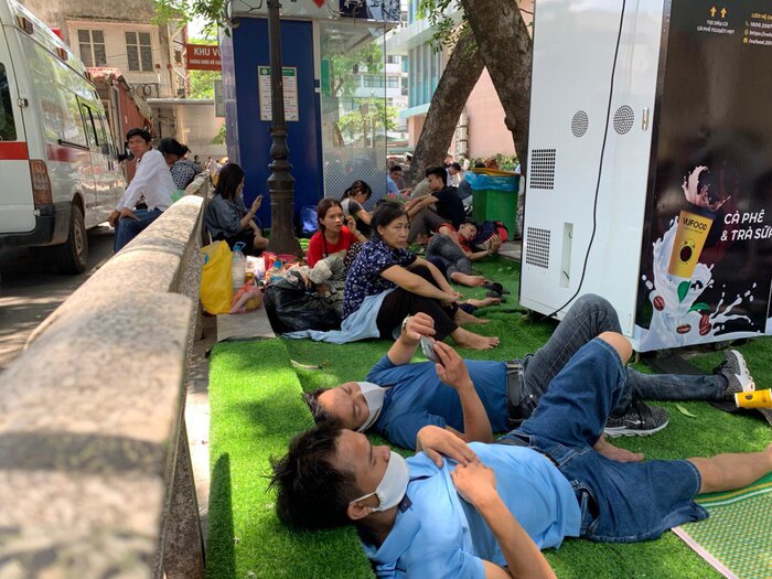 02/06/2020 21:51Chùm ảnh: Người thân bệnh nhân vật vờ ngoài hành lang bệnh viện Bạch Mai dưới cái nóng 40 độ