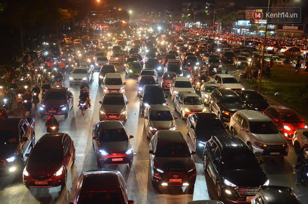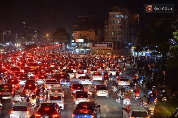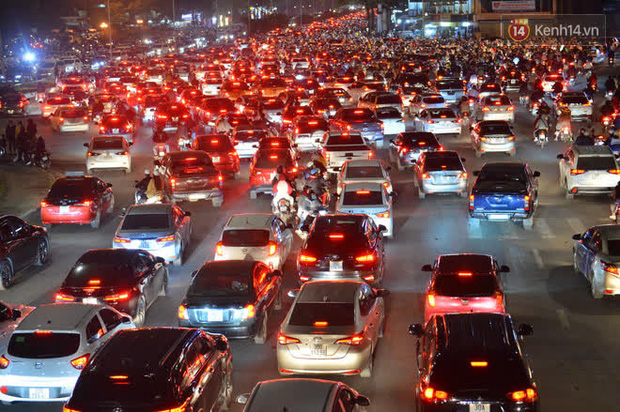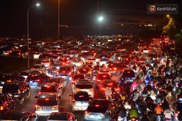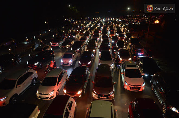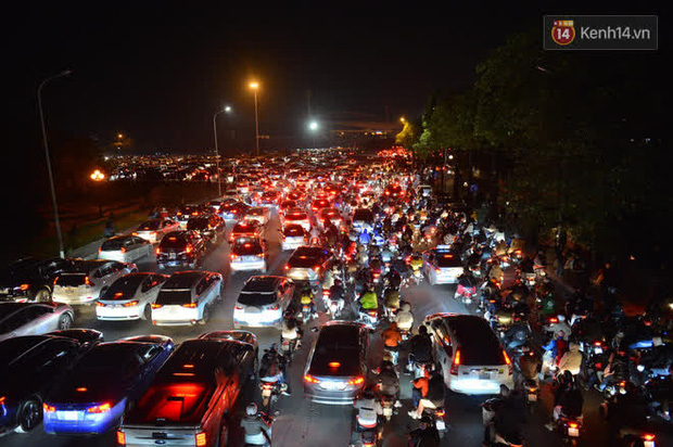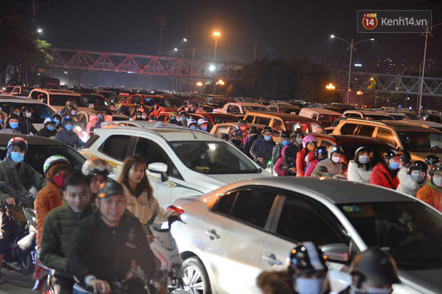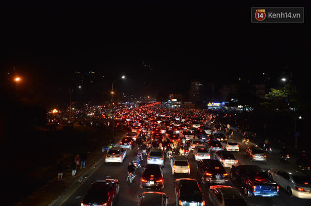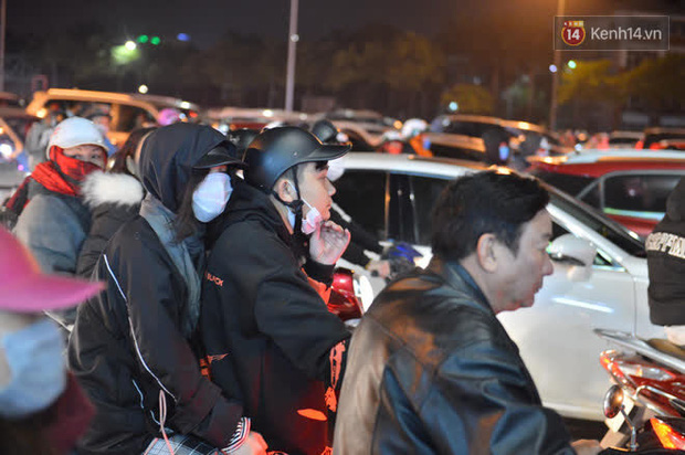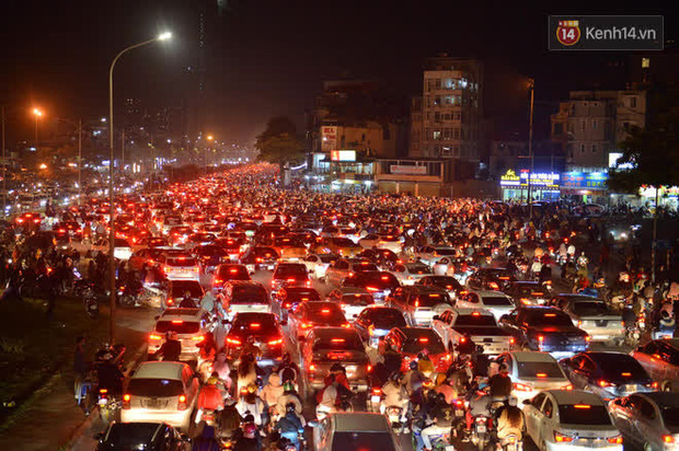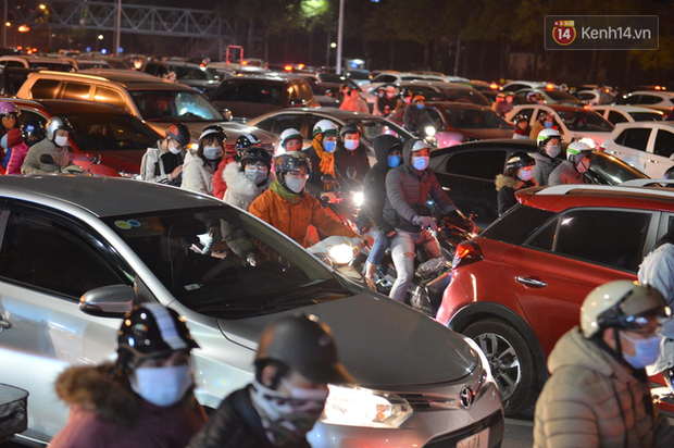 Sau khi kết thúc màn bắn pháo hoa kéo dài 15 phút, hàng nghìn người bắt đầu rời khỏi khu vực SVĐ Mỹ Đình gây ra tình trạng tắc đường nghiêm trọng.