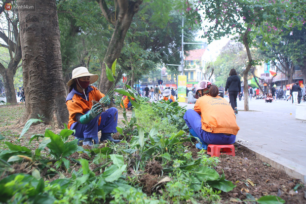 06/01/2021 13:50Chùm ảnh: Thảm hoa phố đi bộ hồ Gươm bị dẫm đạp nát bét sau đêm Tết Dương lịch, công nhân hối hả trồng lại