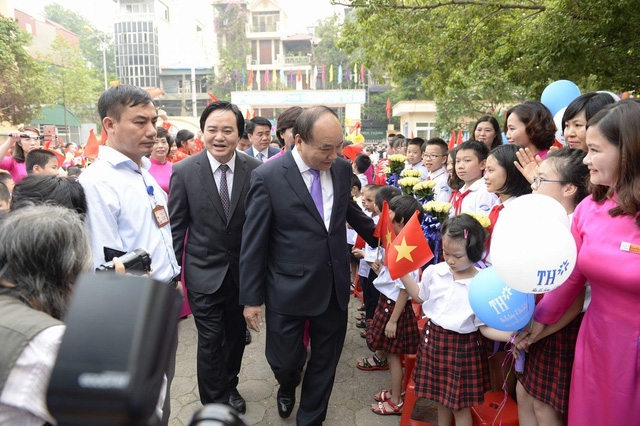 Thủ tướng Nguyễn Xuân Phúc dự khai giảng tại trường PTCS Nguyễn Đình Chiểu, Hà Nội. (Ảnh: Mạnh Thắng) |