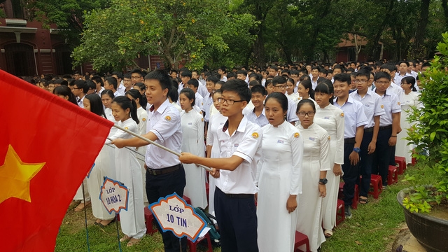 Lễ khai giảng tại trường THPT chuyên Quốc Học Huế. (Ảnh: Đại Dương) |