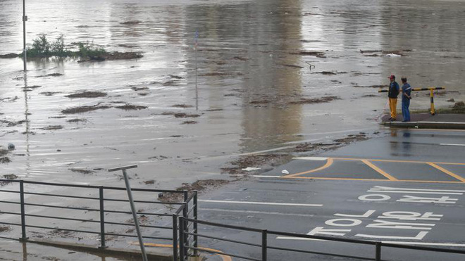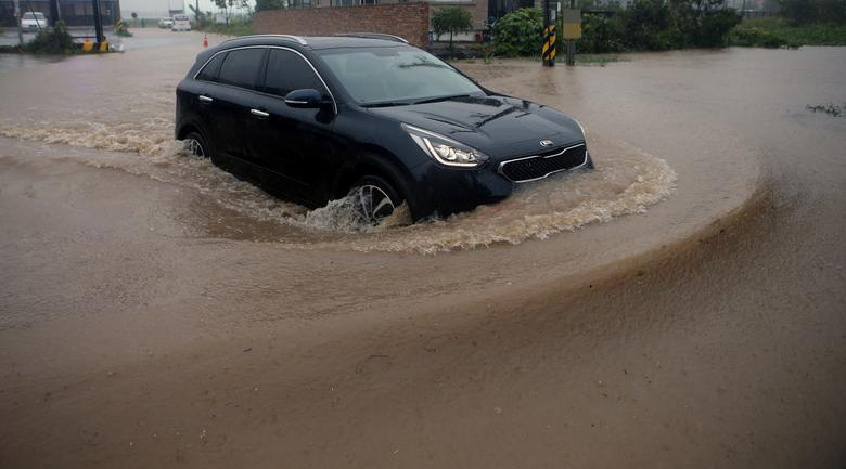 Đến trưa 7/9, cơn cuồng phong đổ bộ xuống Hàn Quốc, gây ra sạt lở đất nghiêm trọng cùng hàng trăm chuyến bay phải hủy bỏ. Gió mạnh đánh bật gốc nhiều cây cối. Cột đèn giao thông xung quanh thành phố Busan cũng chung số phận.