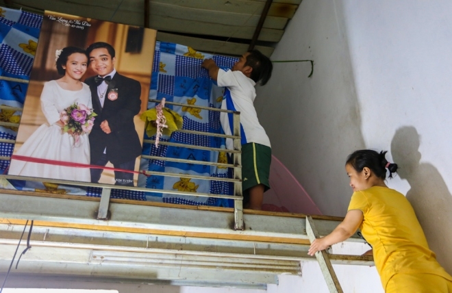 Khi yêu nhau, anh Lượng luôn chăm chút người yêu hết mình. Anh chuyển hẳn nhà trọ gần chỗ bạn gái để tiện chăm sóc. Cuối năm 2015, chị Đào dẫn bạn trai về quê ra mắt ba mẹ. Nào ngờ, gia đình phản đối. "Tôi phải về mất ba bận mới thuyết phục được gia đình cô ấy cho cưới. Ngày 20/10 năm ấy, chúng nên duyên vợ chồng thông qua đám cưới tập thể", anh Lượng nhớ lại. |