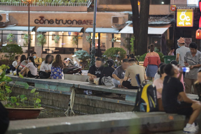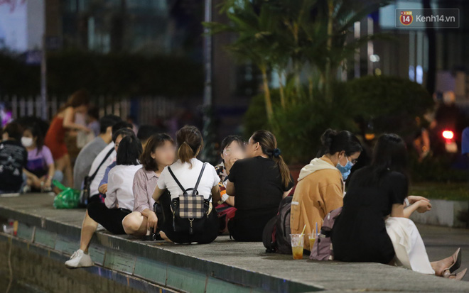 Cụ thể, ở phố đi bộ Nguyễn Huệ và một số tuyến phố xung quanh thuộc phường Bến Nghé, quận 1, rất đông các bạn trẻ tụ tập, uống nước. Đáng nói, số người đeo khẩu trang đúng cách để phòng dịch Covid-19 là rất ít.