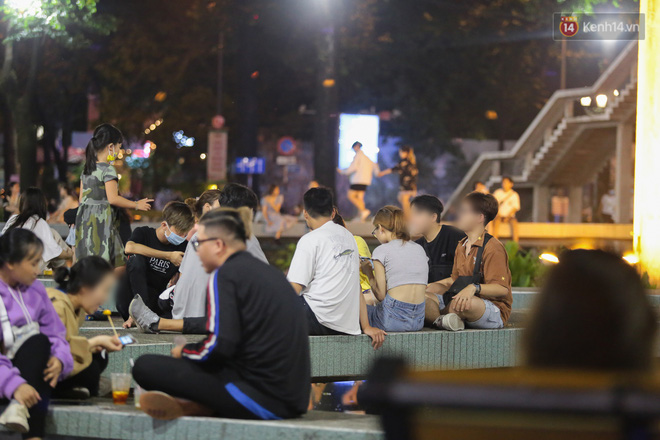 Đặc biệt, vào khoảng 20h, lượng người đông cả trên vỉa hè, tràn cả xuống đường. Mọi người thoải mái cười nói, tập trung đông đúc.