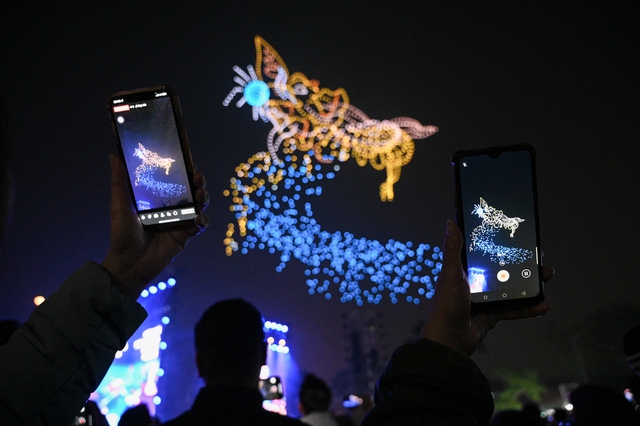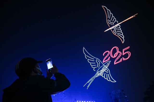 Tối ngày 17/1, rất đông người dân đã có mặt tại khu vực ngã tư Lạc Long Quân - Nguyễn Hoàng Tôn (Hà Nội) để xem buổi tổng duyệt chương trình Hòa nhạc Ánh sáng - Chào năm mới 2025 với 2.025 drone kết hợp âm nhạc truyền thống.