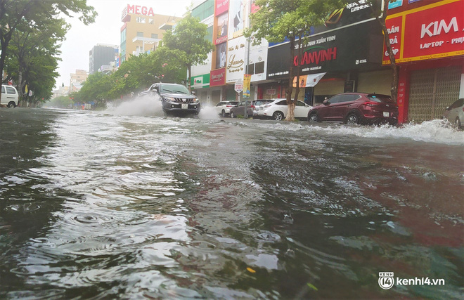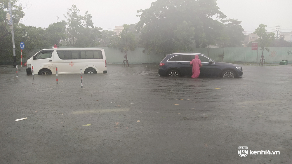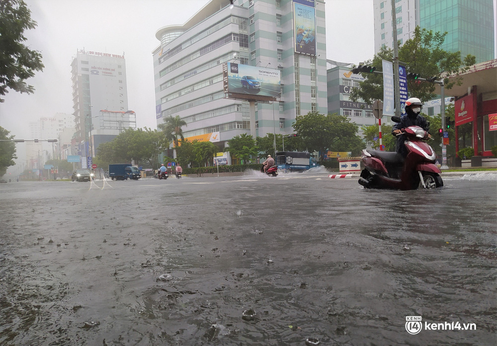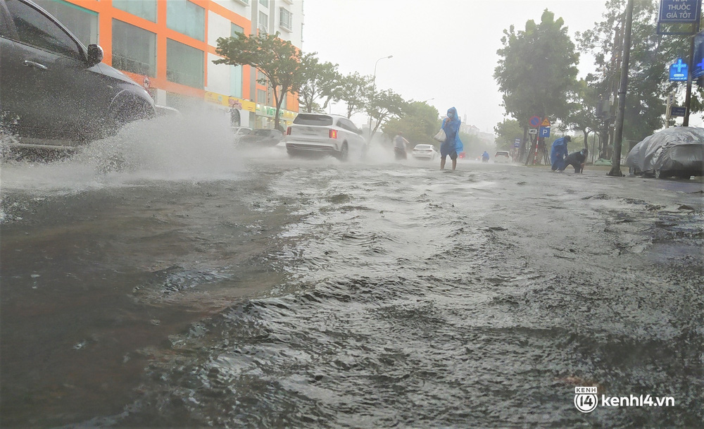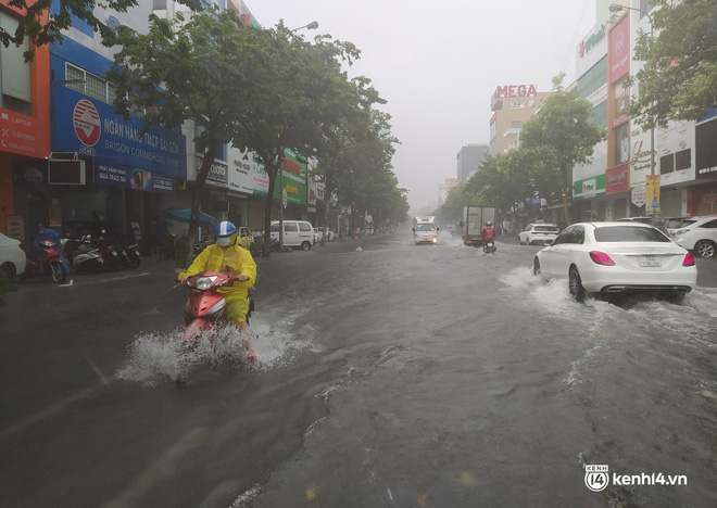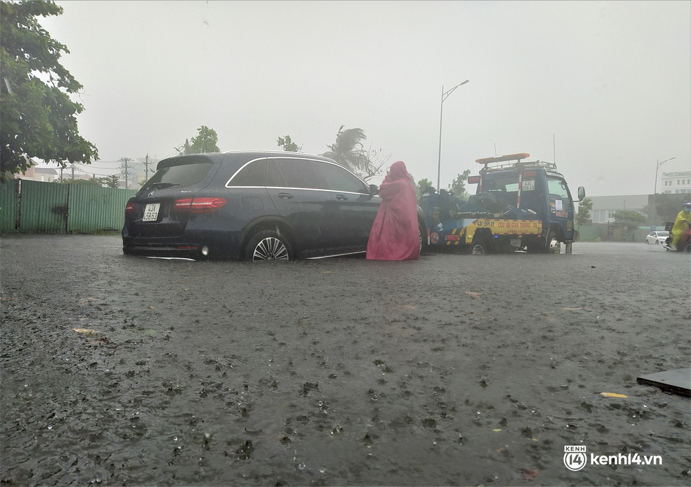 Cơn mưa lớn do ảnh hưởng của bão số 5 từ đêm qua đến trưa nay (11/9) khiến nhiều tuyến phố ở Đà Nẵng ngập sâu cục bộ, hàng loạt ô tô, xe máy bị chết máy giữa đường.