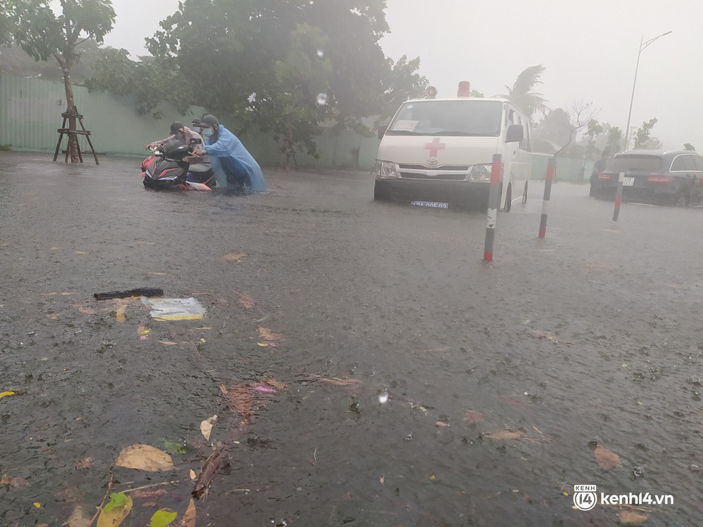 11/09/2021 20:31Clip, ảnh: Mưa trắng trời trước bão, đường phố Đà Nẵng ngập thành sông, xe cứu thương và nhiều phương tiện chết máy