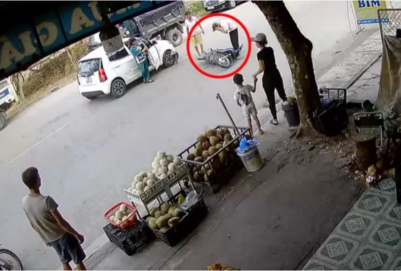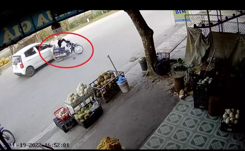 Theo camera an ninh của một hộ dân bên đường ghi lại, một nam thanh niên điều khiển xe máy không đội mũ bảo hiểm bỗng đánh tay lái sang đường bất ngờ nên xảy ra va chạm với ô tô đi cùng chiều.