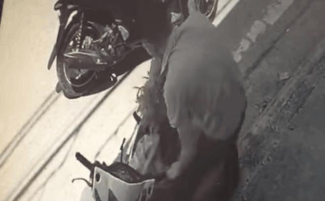 Sự việc xảy ra trên một con đường khá vắng vẻ, khi chiếc xe máy được bên đường và túi rau được treo phía trước chỗ để chân.