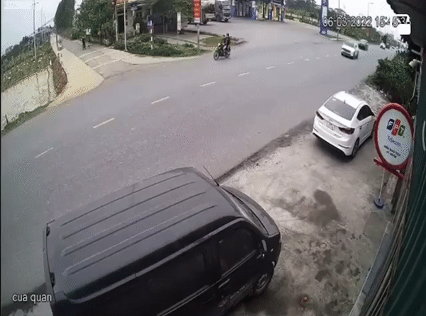 Được biết, vụ việc xảy ra vào khoảng 15h45p ngày 6/3 trên đường QL 17B địa bàn thị xã Kinh Môn, tỉnh Hải Dương, được camera an ninh ghi lại.