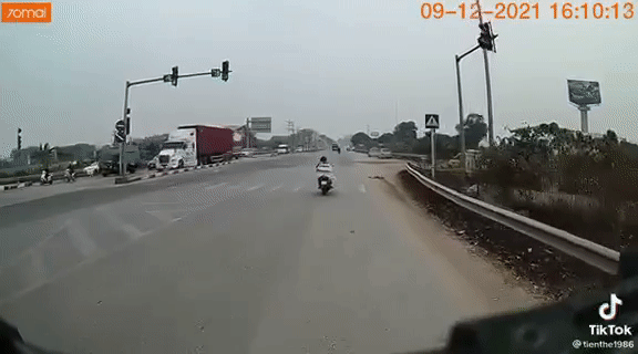 11/12/2021 23:18Clip: Khoảnh khắc tài xế xe máy 'thoát chết' thần kỳ trước đầu xe container
