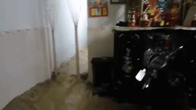 Mới đây, một đoạn clip ghi lại cảnh tưởng được cho là xảy ra vào đêm 13/12 tại nhà một người dân ở Khánh Hòa. Trong đêm tối, nước lũ chảy siết qua mọi ngõ ngách ở tầng 1, mọi người chỉ còn biết chứng kiến cảnh tượng trên một cách ngán ngẩm.