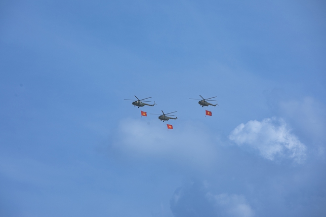 Tại khu vực công viên Bến Bạch Đằng, người dân dễ dàng quan sát những màn trực thăng kéo cờ Đảng, cờ Tổ quốc trên bầu trời.