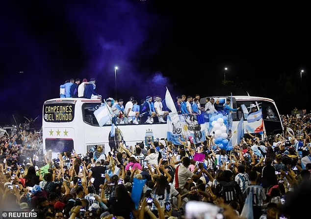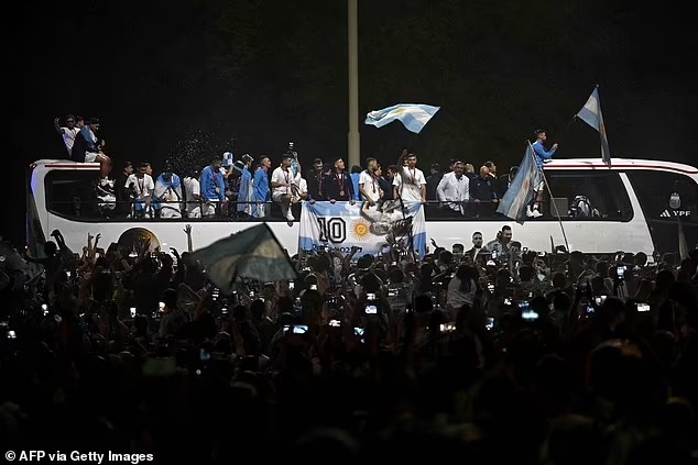 Những người hâm mộ đã xếp hàng dài trên đường phố vào hơn 2h sáng để được chứng kiến các ngôi sao đội tuyển Argentina trên một chiếc xe buýt mui trần diễu hành tại thủ đô Buenos Aires.