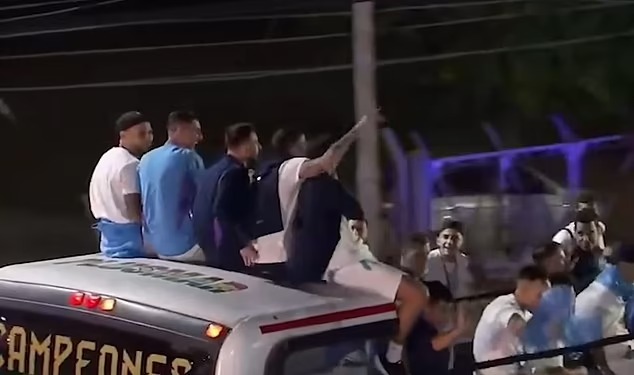 Tất cả thành viên còn lại của tuyển Argentina trên xe đều thót tim sau sự việc, nhưng họ cũng nhanh chóng lấy lại nụ cười và tiếp tục màn ăn mừng chiến thằng với những người dân bên dưới.