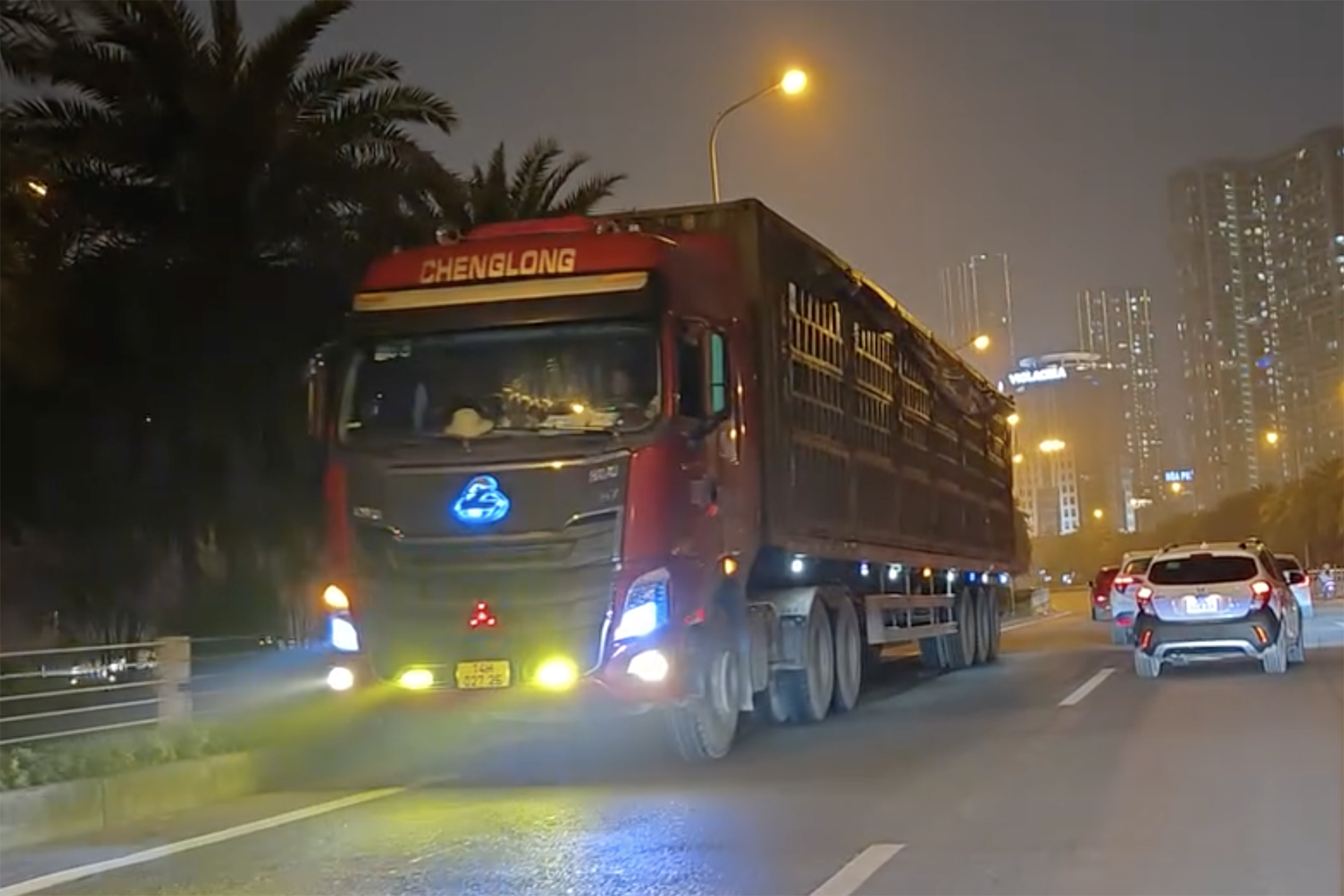 Tối 11/4, trên mạng xã hội xuất hiện đoạn clip ghi lại cảnh ô tô đầu kéo biển kiểm soát 14H-027.XX đi ngược chiều tại lối dẫn xuống hầm chui Trung Hòa (đầu Đại lộ Thăng Long, quận Nam Từ Liêm, Hà Nội).