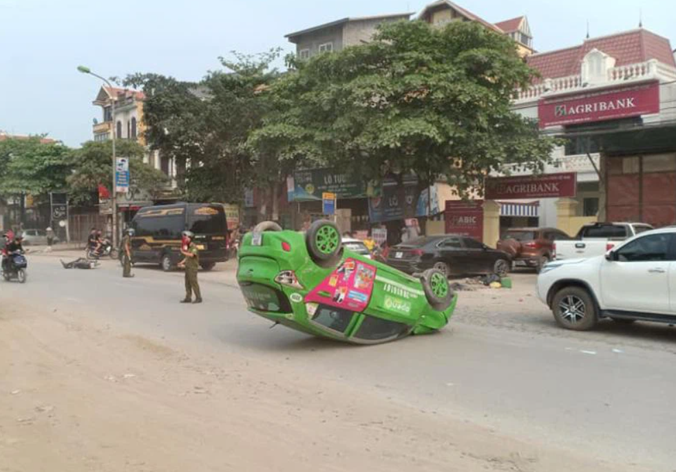 Taxi Mai Linh mất khống chế gây tai nạn thương tâm, xe lật ngửa, một người trọng thương |