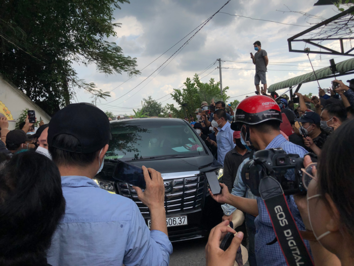 Do quá đông người nên nữ CEO không thể xuống xe được, bên cạnh đó, phía tịnh thất cũng cho biết sẽ không tiếp bà Phương Hằng.
