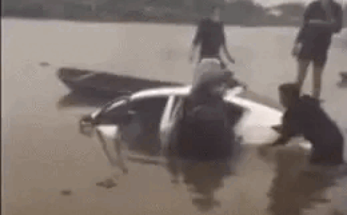 Một vài người trèo lên trần xe, những người khác đứng dưới, dùng hết sức lực mở cửa, kéo nạn nhân ra ngoài. Khi đưa thi thể từ phía trong ô tô ra, cả thân xác người đàn ông đã cứng đờ, lạnh ngắt. Rất đông người dân đứng trên bờ theo dõi quá trình vớt thi hài nạn nhân xấu số.