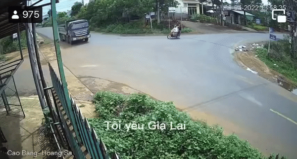 Theo hình ảnh đoạn clip cho thấy, vụ tai nạn xảy ra vào khoảng 12h ngày 30/4 tại Gia Lai. Thời điểm này, khi đang lưu thông qua khu vực ngã tư, hai người điều khiển xe máy đâm sầm vào hông xe tải.