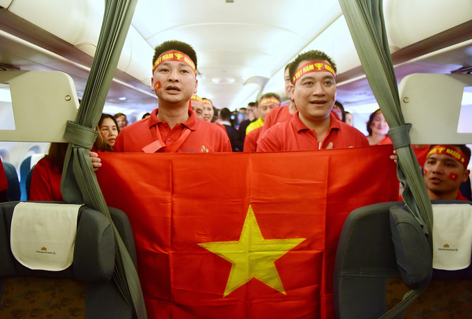 11/12/2019 00:22Cổ động viên hát vang Quốc ca trên chuyên cơ khi lên đường cổ vũ U22 Việt Nam
