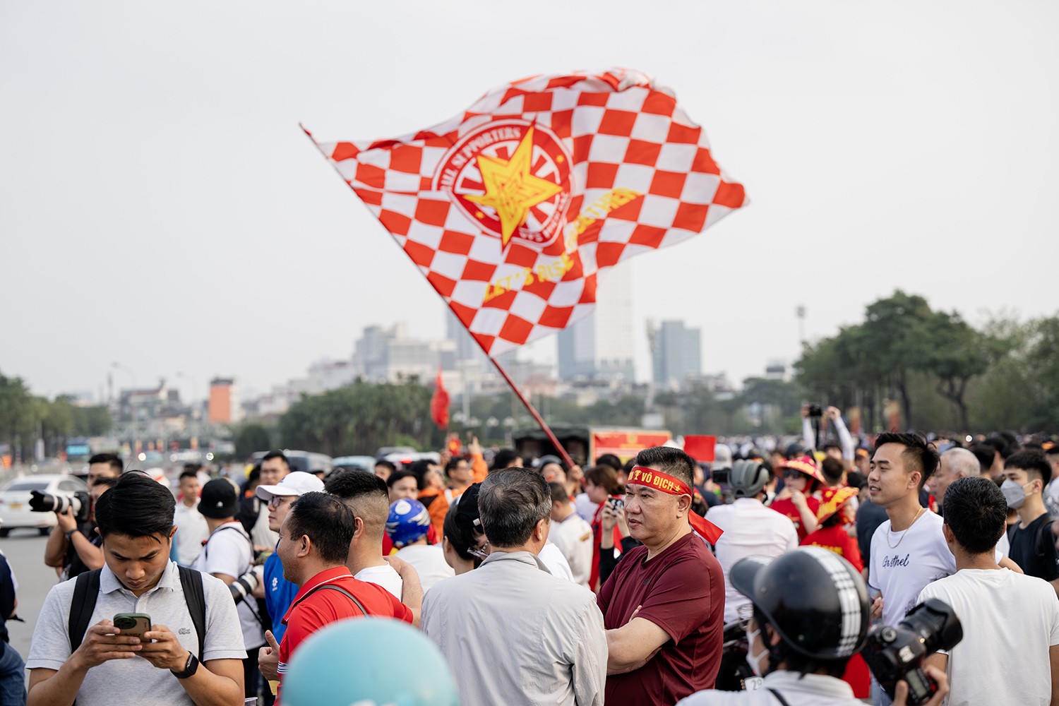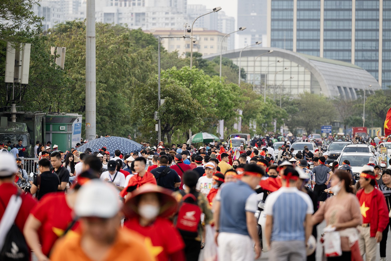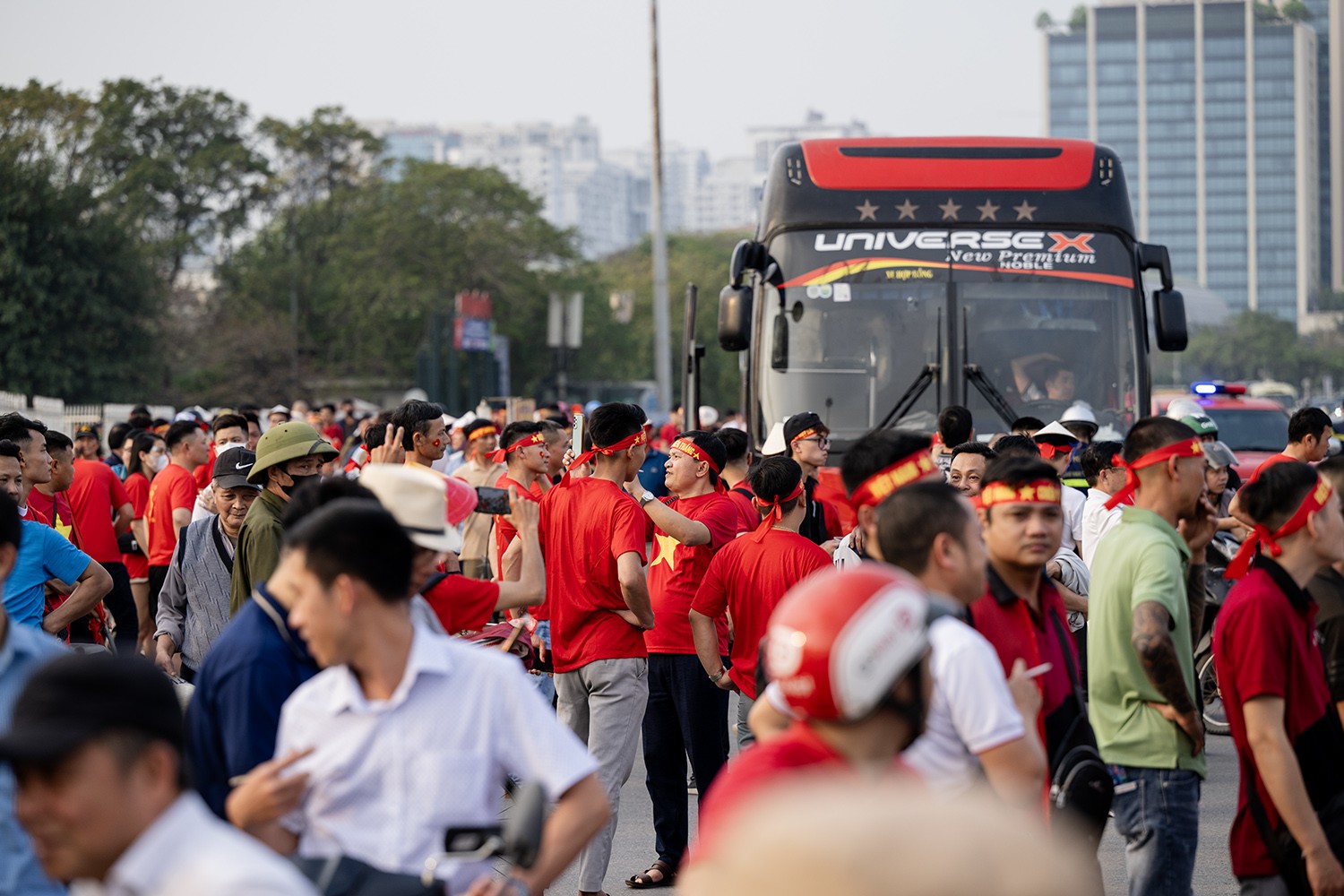 Trước trận đấu Việt Nam và Indonesia, hàng nghìn người đổ về sân vận động Mỹ Đình (Hà Nội) để "tiếp lửa" cho các cầu thủ.