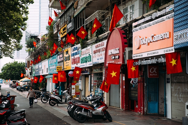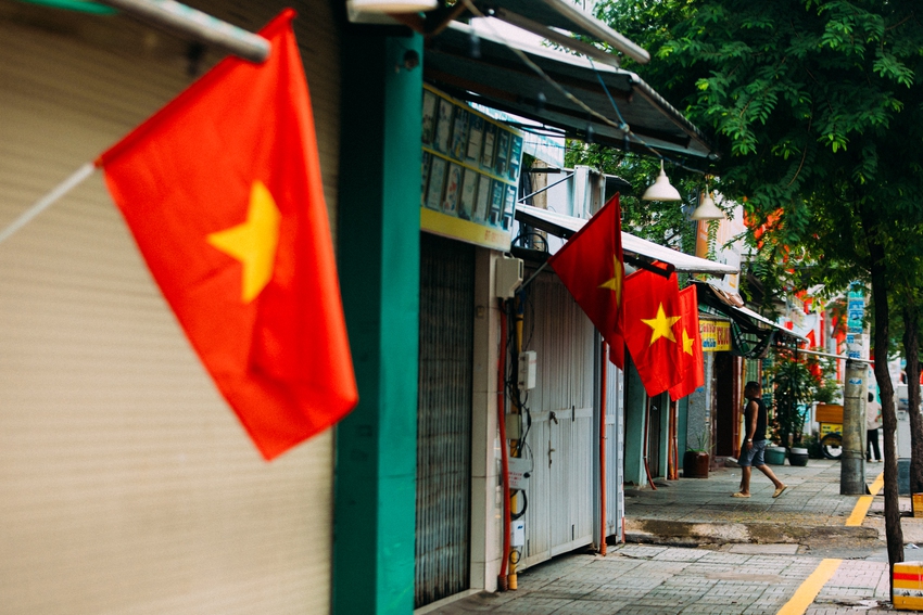 Sáng ngày 2/9, khắp các ngả đường ở TP.HCM đều ngập sắc cờ đỏ sao vàng.
