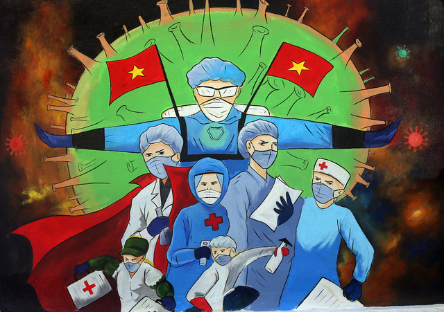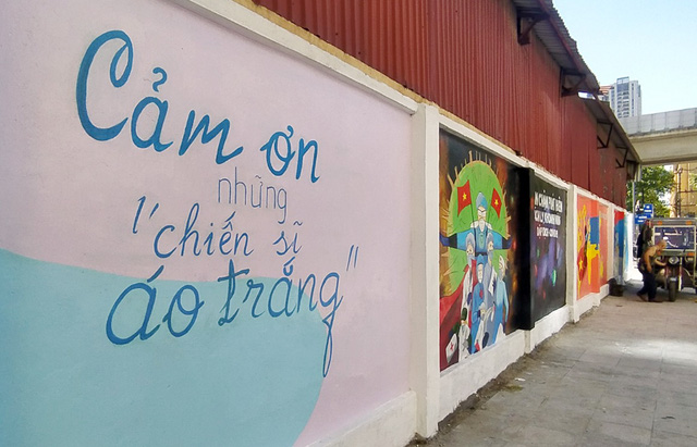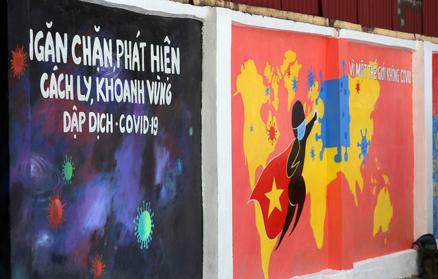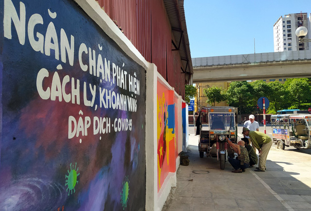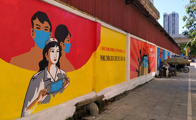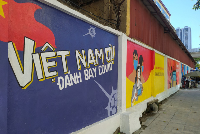 Con đường tranh bích họa cổ vũ Việt Nam chiến thắng dịch COVID-19 đầu tiên tại Hà Nội được hoàn thiện dưới sự chung tay của các họa sĩ đã khiến đông đảo người dân thích thú.