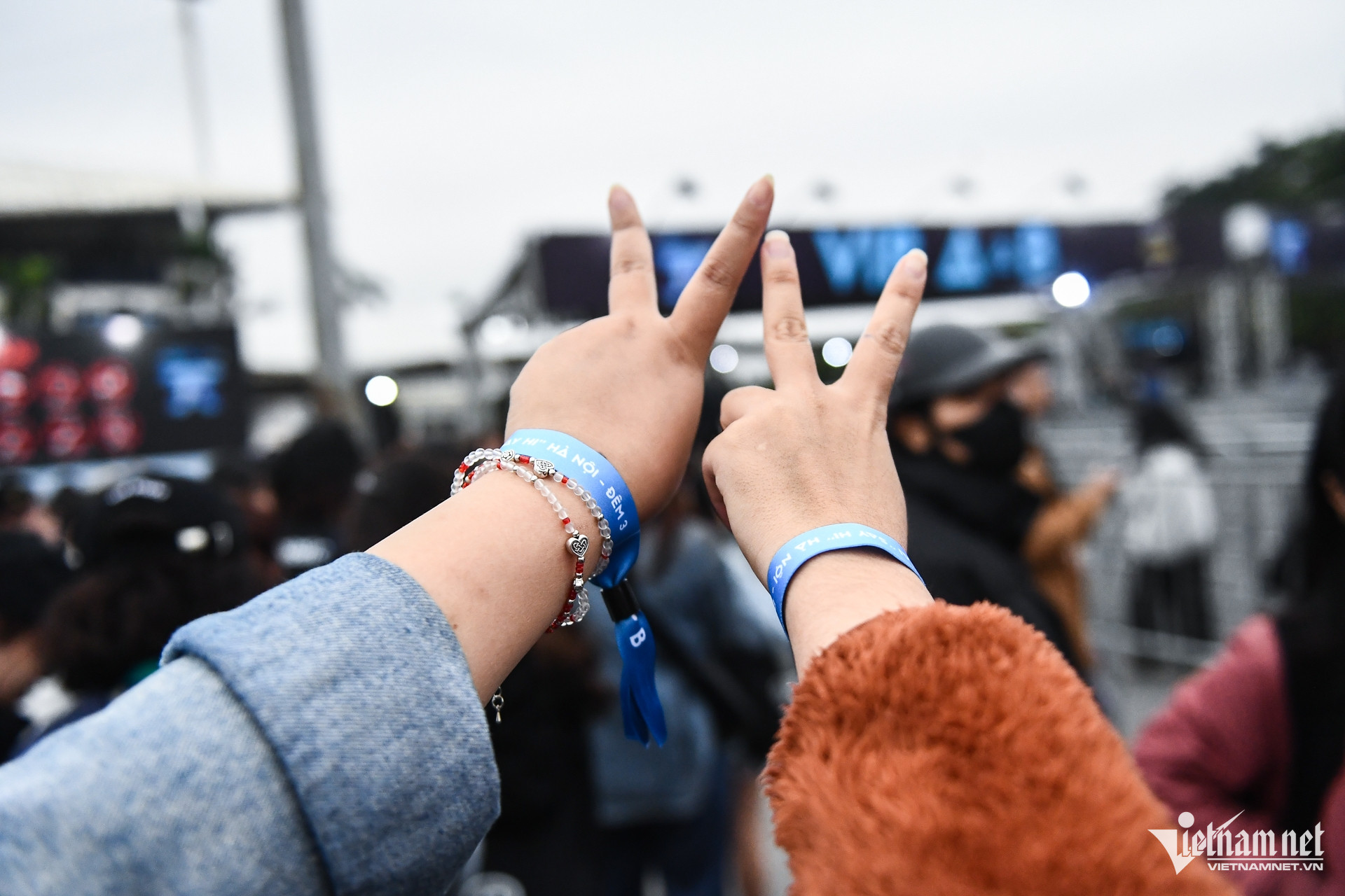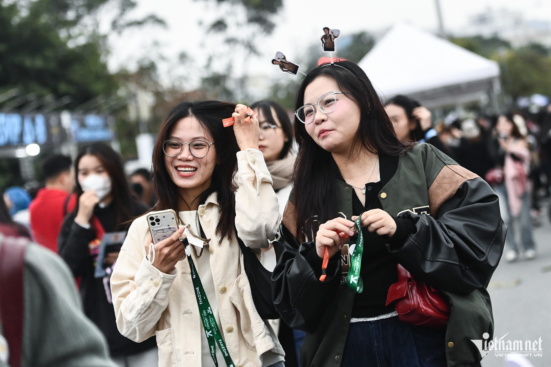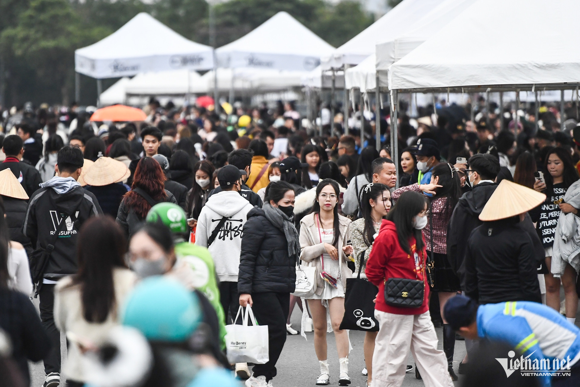 Hàng nghìn khán giả đổ về SVĐ Mỹ Đình trước giờ diễn concert "Anh trai say hi", trong đó nhiều dân văn phòng xin nghỉ làm sớm, chờ hàng giờ mua vé.