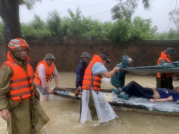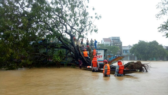 Hiện nước trên sông Bồ tại Phú Ốc xuống còn 4,88 m nhưng các vùng hạ du của huyện Quảng Điền, Hương Trà, Phú Vang vẫn ngập nặng. Những ngày qua, lực lượng Công an tỉnh Thừa Thiên - Huế luôn ứng trực 100% quân số, sẵn sàng lên đường ứng cứu, tiếp tế lương thực cho người dân bất kể lúc nào.