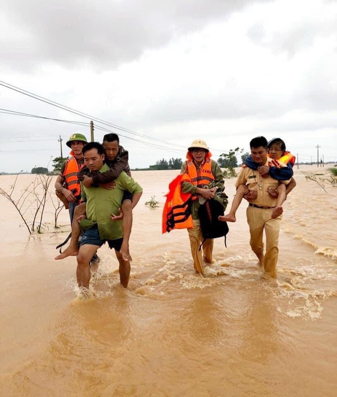 Cơn lũ kinh khủng kéo dài trong nhiều ngày qua đã làm ngập hơn 63.000 ngôi nhà, Công an tỉnh Thừa Thiên - Huế không quản hiểm nguy để cứu dân, đưa đến nơi an toàn và tiếp tế lương thực.
