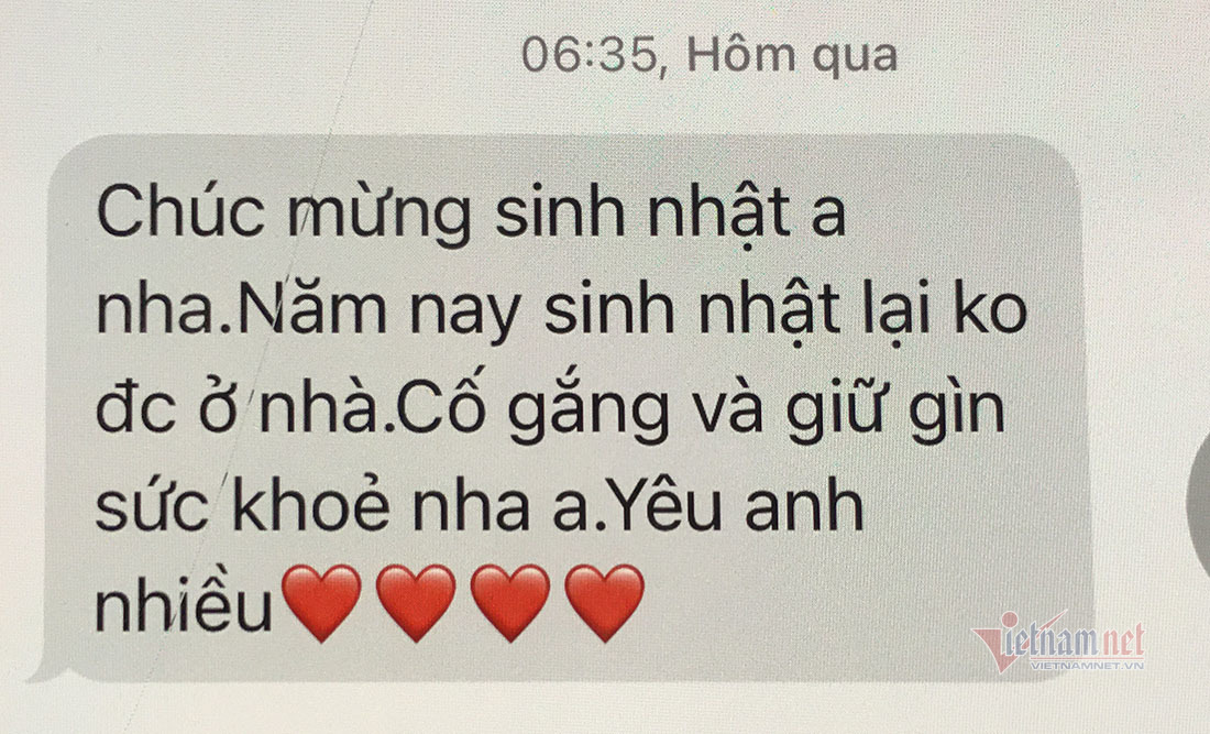 Vợ anh Quân là giáo viên dạy ở Trường Tiểu học Lê Mao. Biết chồng chuẩn bị nhận nhiệm vụ trực chốt, ở nhà chị đã xếp quần áo, tư trang để anh lên đường. Chúc mừng chồng nhân Ngày truyền thống Công an nhân dân Việt Nam, vợ anh Quân gọi điện: “Chúc bố luôn khoẻ mạnh, hoàn thành tốt mọi nhiệm vụ”.