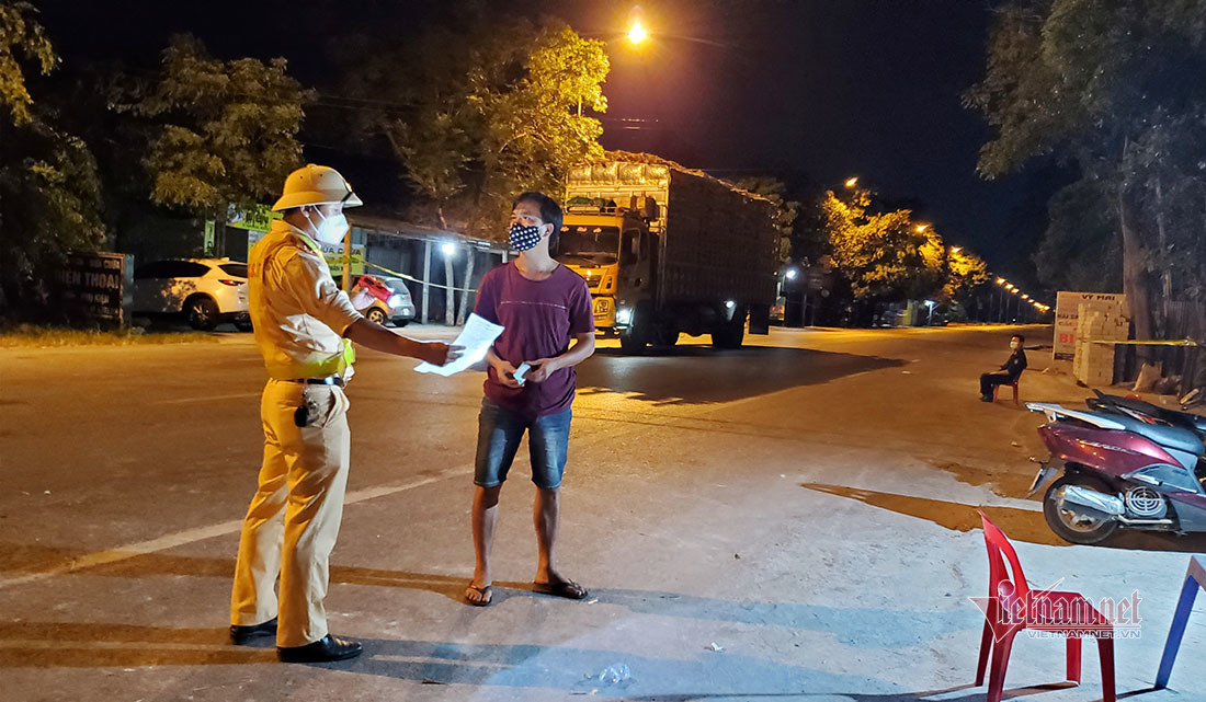 Đồng hồ điểm 0h ngày 19/8, ở chốt số 10 phòng chống dịch Covid-19 QL46A hướng TP Vinh – TX.Cửa Lò là lúc những chuyến xe chở hàng cuối cùng đi xuyên từ ngày cũ sang ngày mới dừng lại. Tài xế xuất trình giấy tờ theo quy định để được qua chốt.