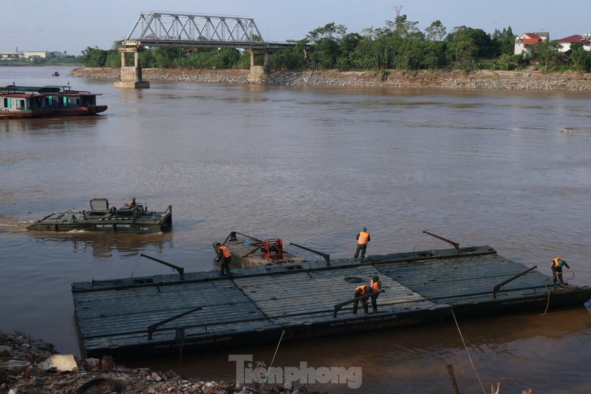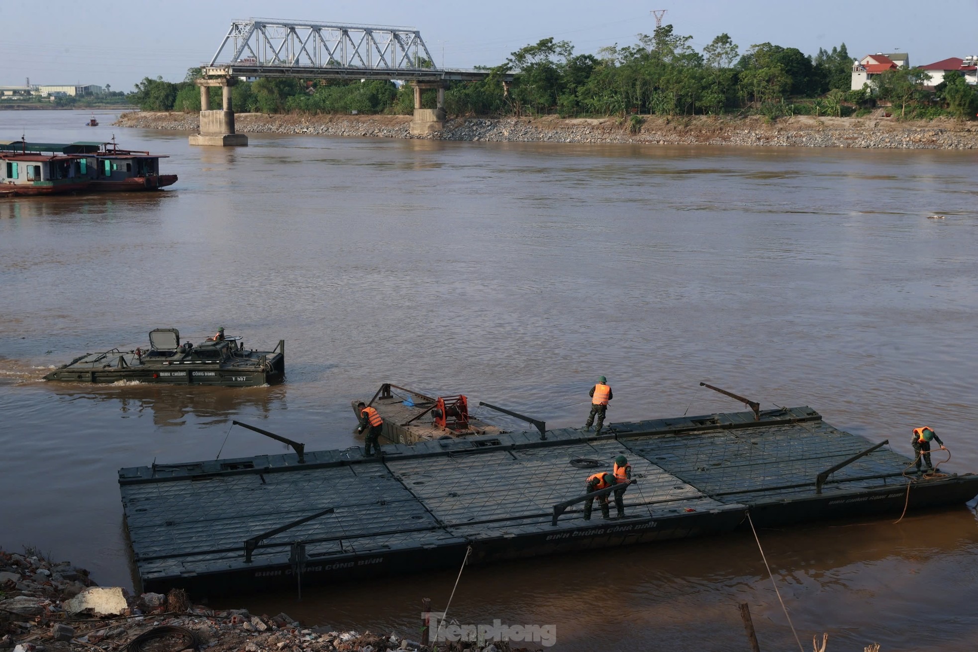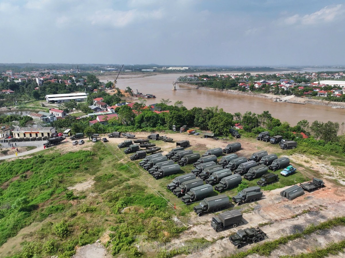 Chiều 28/9, Lữ đoàn 249 (Binh chủng Công binh) tổ chức hạ thủy ca nô và các đốt cầu phao để chuẩn bị cho công tác bắc, nối thông cầu phao tại khu vực cạnh cầu Phong Châu (tỉnh Phú Thọ).