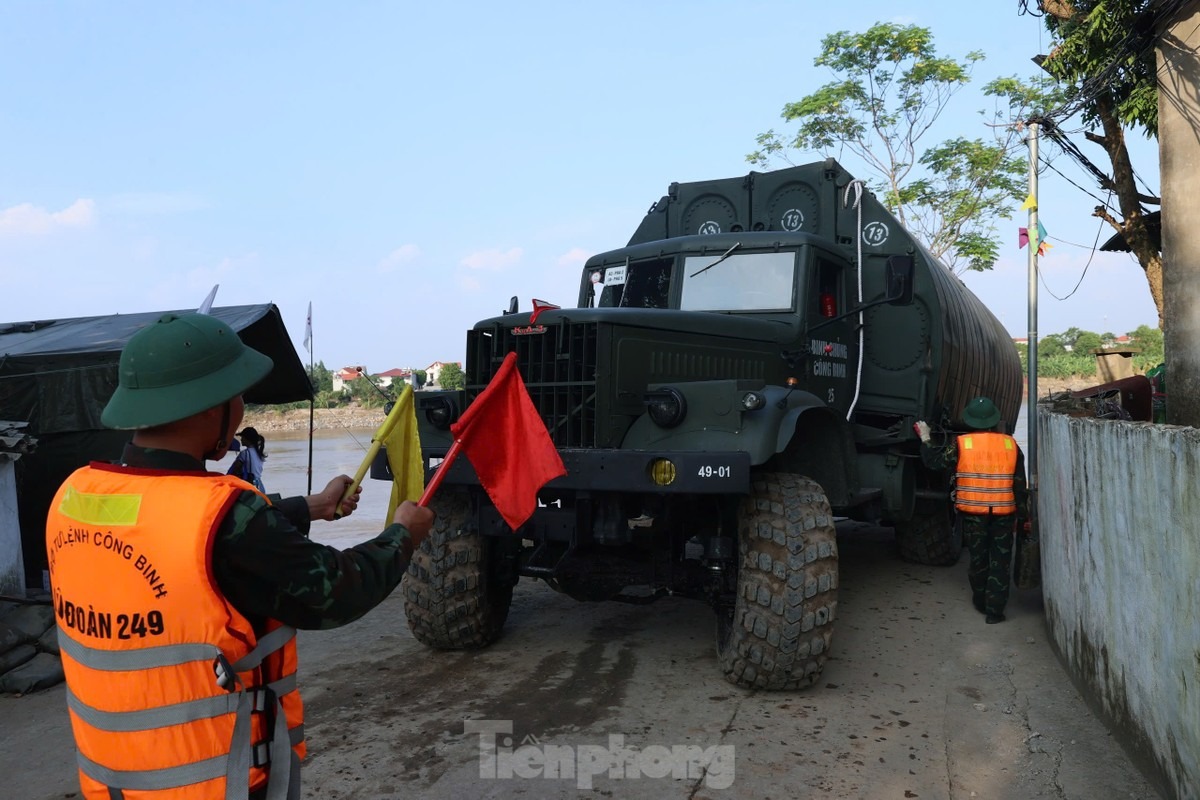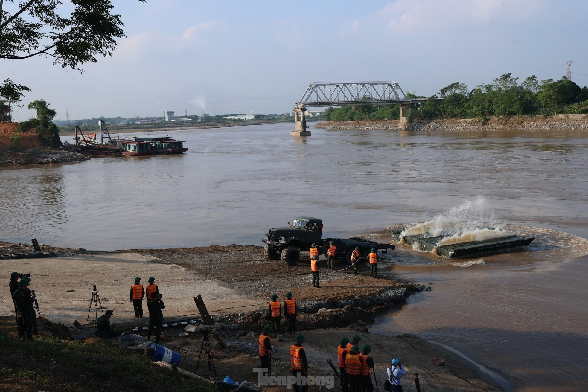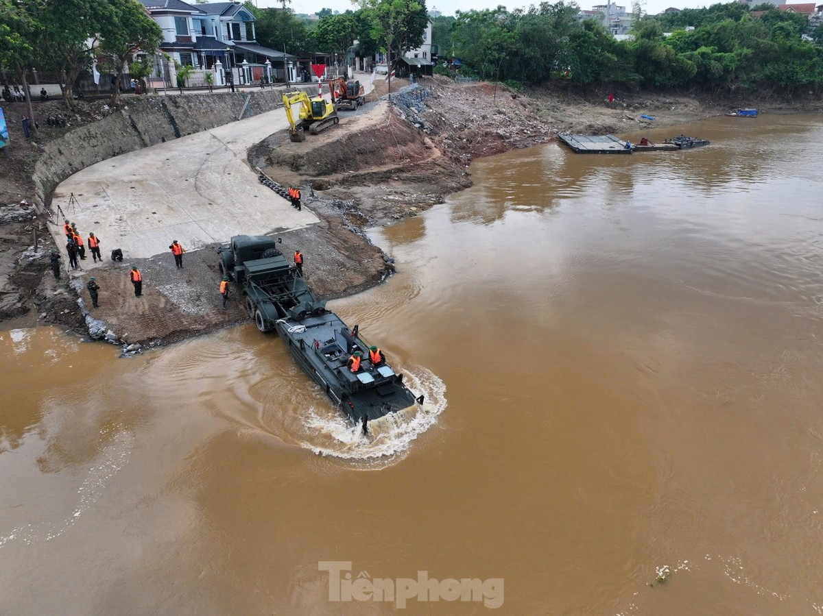 Chiều 28/9, Lữ đoàn 249 (Binh chủng Công binh) tổ chức hạ thủy ca nô và các đốt cầu phao để chuẩn bị cho công tác bắc, nối thông cầu phao tại khu vực cạnh cầu Phong Châu (tỉnh Phú Thọ).